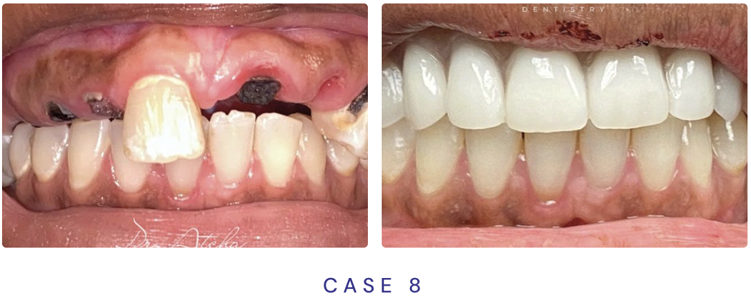 "When I found out none of my teeth would actually be worth saving or going through more partials, I didn’t feel good about myself. Dr. Atcha removed the bad teeth and gave her a permanent set of teeth on the top and bottom using all-on-four implants. I woke up with teeth, straight teeth. I couldn’t stop smiling”.